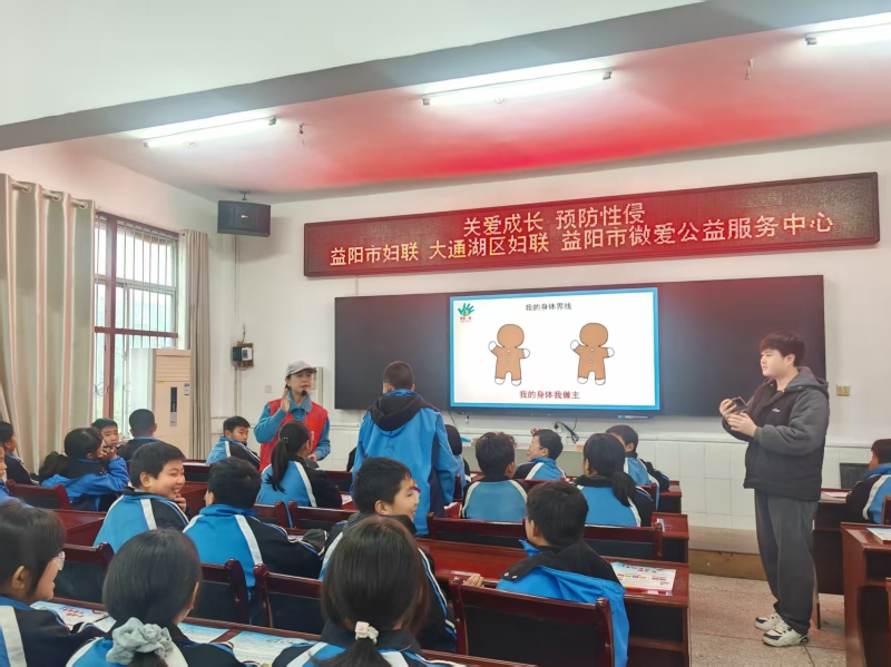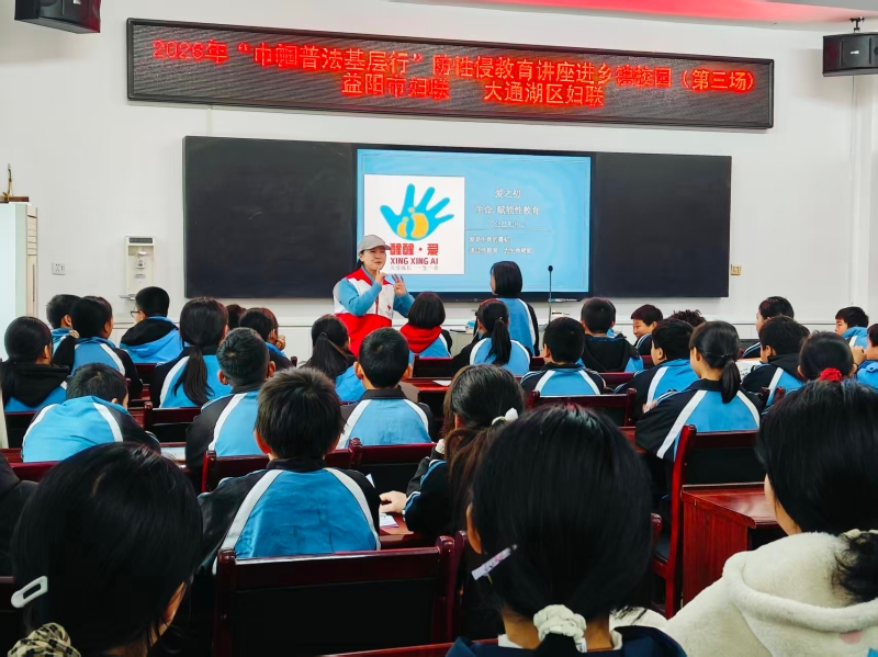 为深入推进 “巾帼普法基层行” 走深走实,切实加强农村青少年心理健康关爱服务,筑牢未成年人权益保护防线,3 月 26 日,益阳市妇联联合大通湖区妇联精心组织开展防性侵教育进校园专题活动,特邀资深心理咨询师项婷老师走进大通湖区金盆镇中学,为全校百余名小初中学生带来一场专业、实用的防性侵公益讲座,以法治力量守护青少年健康成长,助力乡村教育高质量发展。