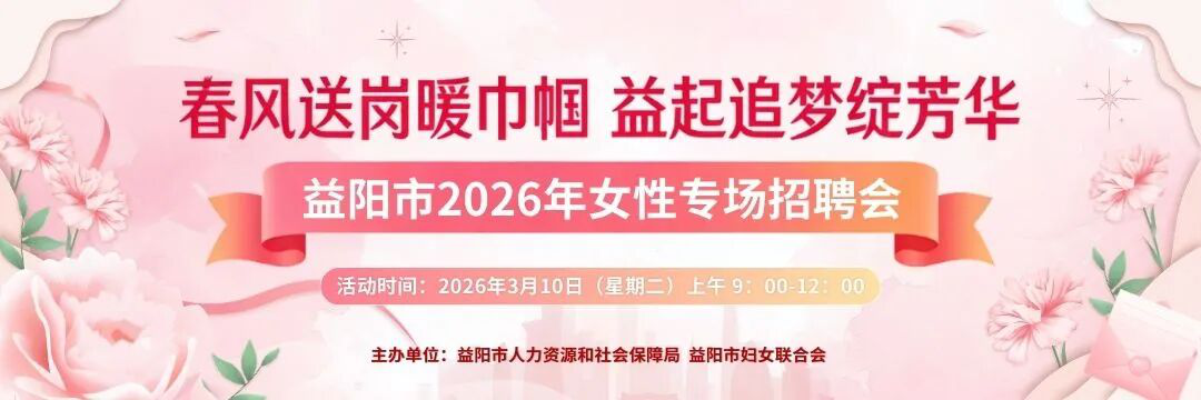 为深入贯彻落实就业优先战略,切实保障女性平等就业权益,助力“她”力量在银城大地绽放光彩,“春风送岗暖巾帼 益起追梦绽芳华” 益阳市2026年女性专场招聘会踏春而来,为全市女性求职者送上一份特别的节日礼物!