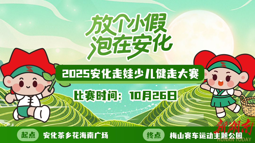 2025安化走娃少儿健走大赛将于10月26日(星期日)9:00-12:00,在安化茶乡花海景区活力开走。