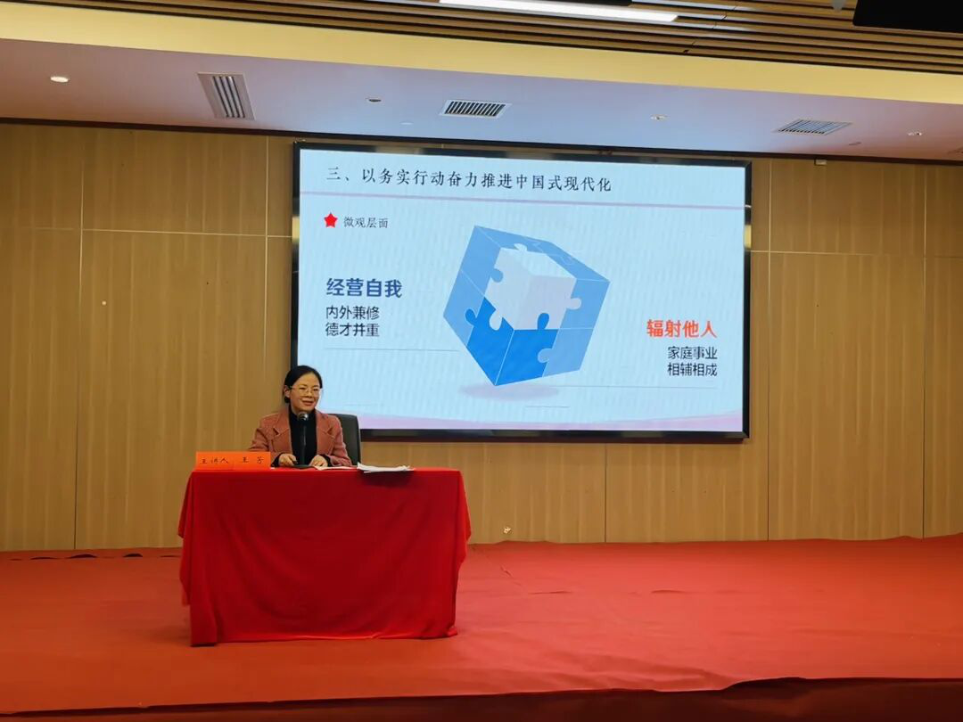 活动现场,市妇联向与会人员宣读“益家向廉”家庭助廉提示函,强调常敲廉政警钟,在日常工作与生活中时刻绷紧廉洁之弦,共同度过一个欢乐祥和、廉洁文明的春节。随后,中共益阳市委学习贯彻党的二十届四中全会精神宣讲团成员、湖南工艺美术职业学院马克思主义学院院长王芳,从明确时代坐标、掌握行动纲领、汲取精神滋养三个方面,深入解读“十五五”时期的历史方位与战略部署,引导大家系统领会党的二十届四中全会精神,增强廉洁修身、廉洁齐家的思想自觉。