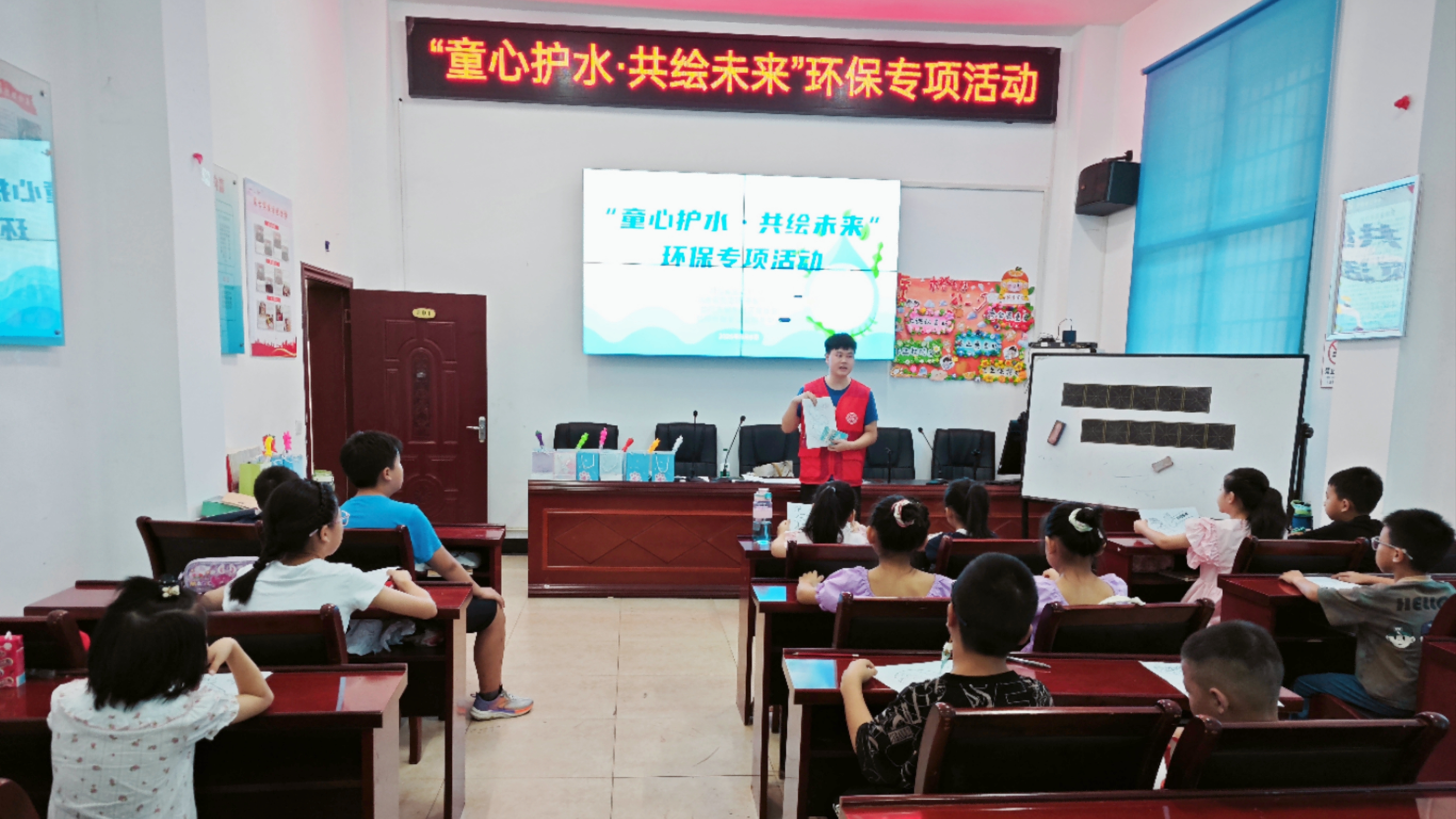 活动伊始,志愿者用通俗易懂的语言向小朋友们讲解“水资源现状、水的重要性、日常节水护水方法”等知识。课堂上,互动问答环节点燃了孩子们的热情,大家争相分享 “用淘米水浇花”“随手关紧水龙头” 等节水小妙招,在轻松的氛围中加深对“节水护水,人人有责” 的理解。