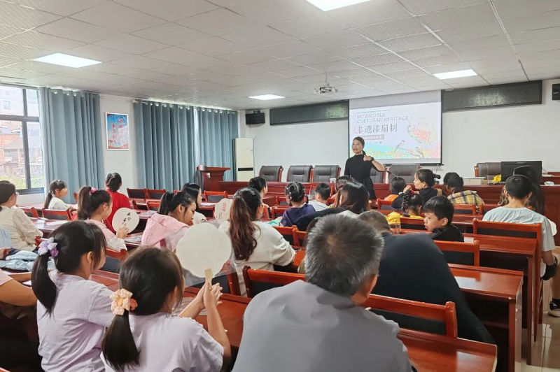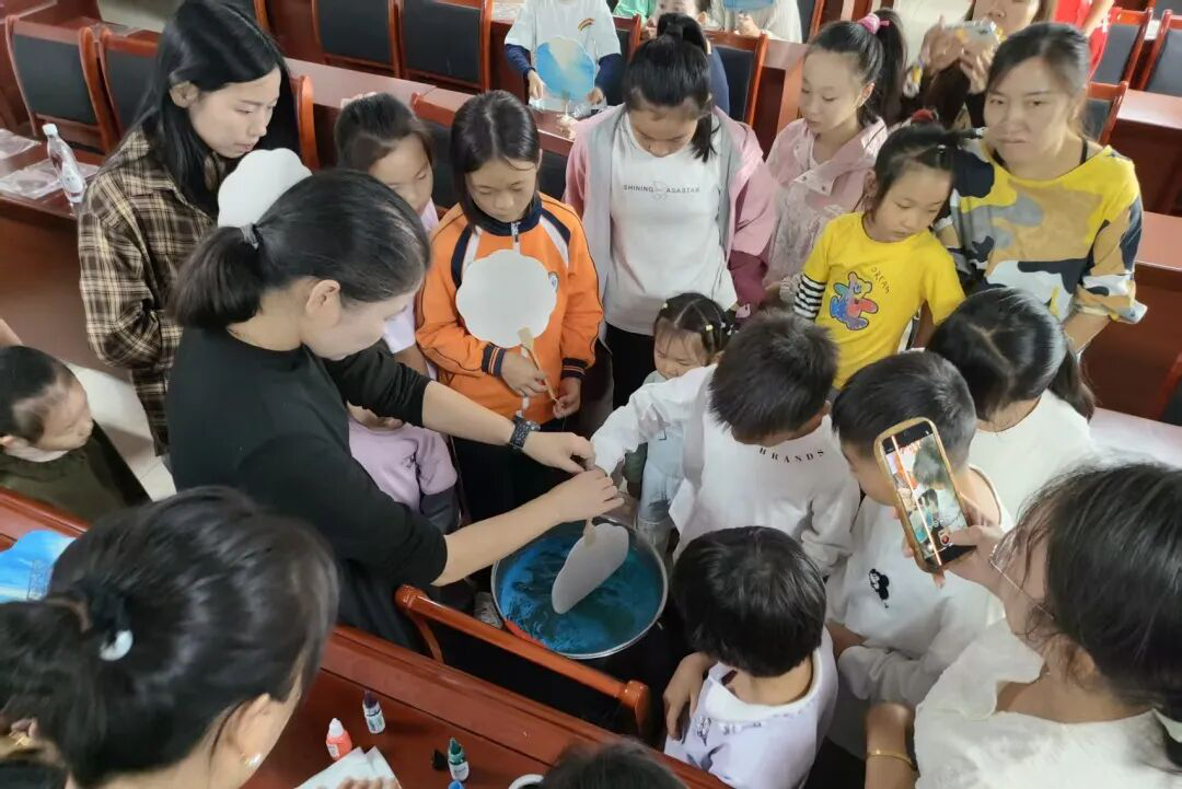随后的非遗漆扇制作、扎染环节,以沉浸式体验激发儿童兴趣,孩子们亲手创作的过程,让非遗文化实现从 “认知” 到 “热爱” 的转化,成功在孩童心中种下传承种子。